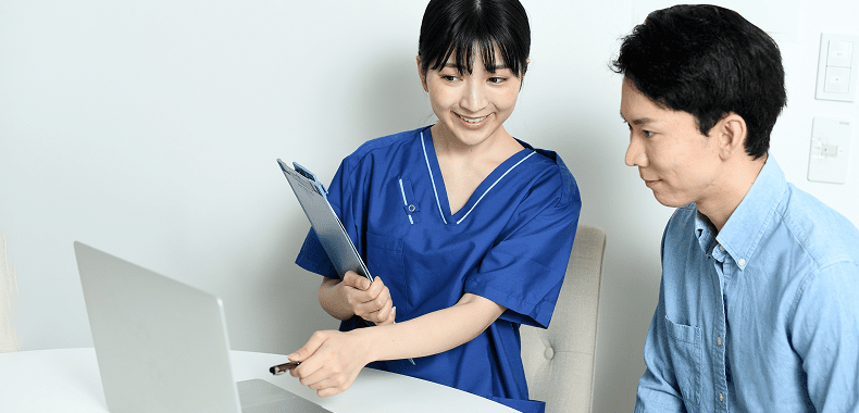診療は3分〜10分ほど。問診票の内容に沿って日本人医師と行います。処方薬の服用方法についても詳しくご説明します。