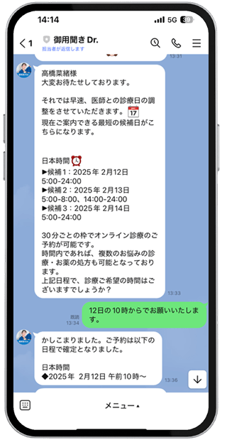 コンシェルジュが診察日を調整し、日程・時間を確定をします。