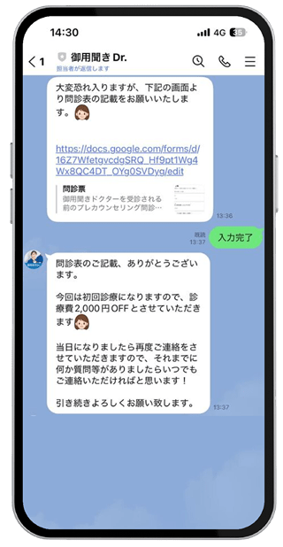 過去に診療されたことがある方は、2回目以降の薬の処方はLINE上での依頼だけでOK!